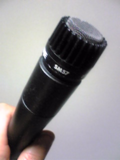 みんなが使うライブ用Vo.マイクのド定番、SM58も自分には近接効果によるローレンジの膨らみ過ぎがひたすら嫌なので、ワザワザ吹かれ防止用ウインドスクリーン付きのSM57(58よりは嫌みな低音が出ない・・)をマイマイクとして持ち歩く羽目に。